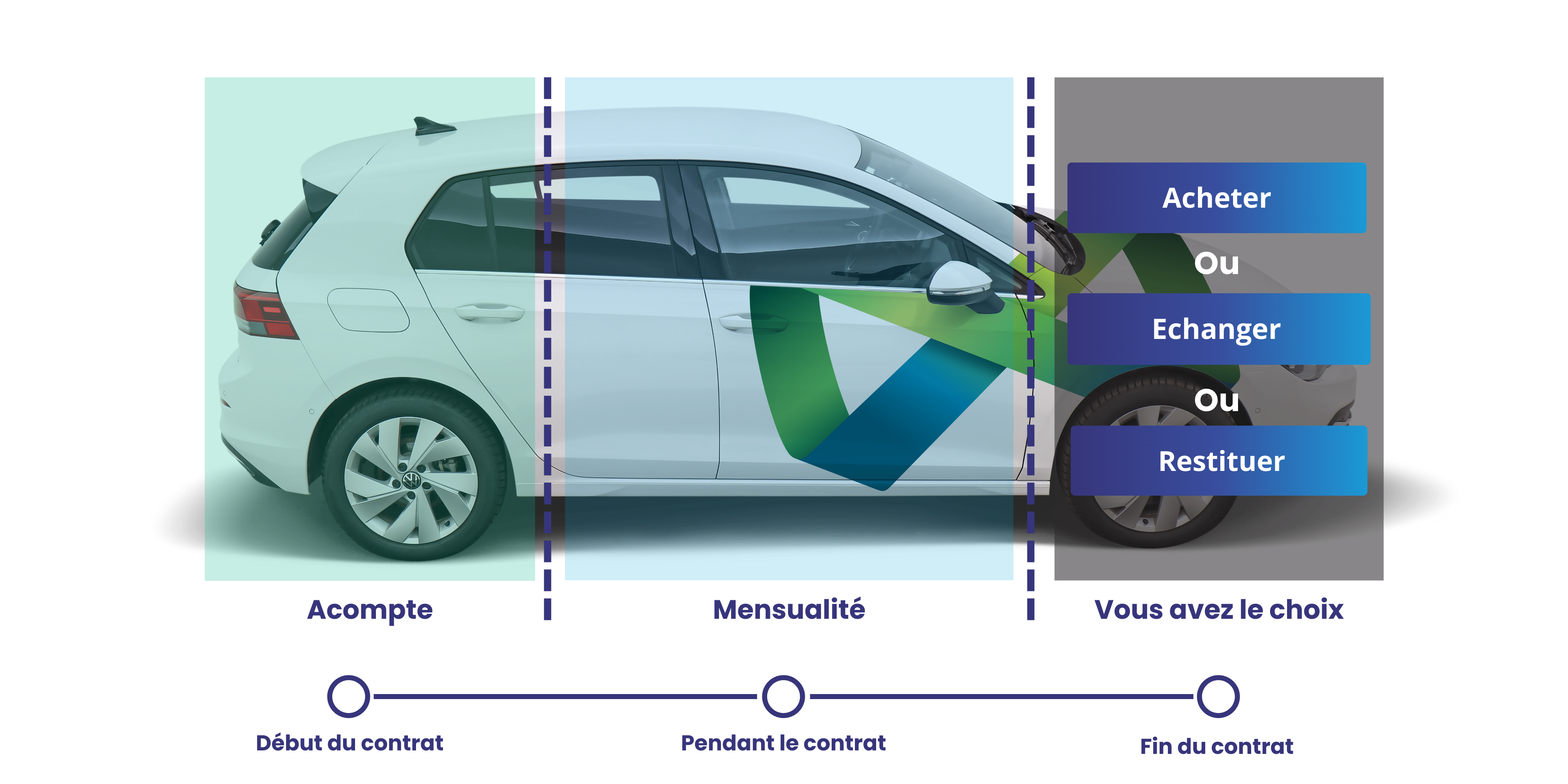 Flexibilité en fin de contrat : En fin de contrat, vous pouvez choisir de restituer le véhicule, de le garder ou de le remplacer par un nouveau modèle.