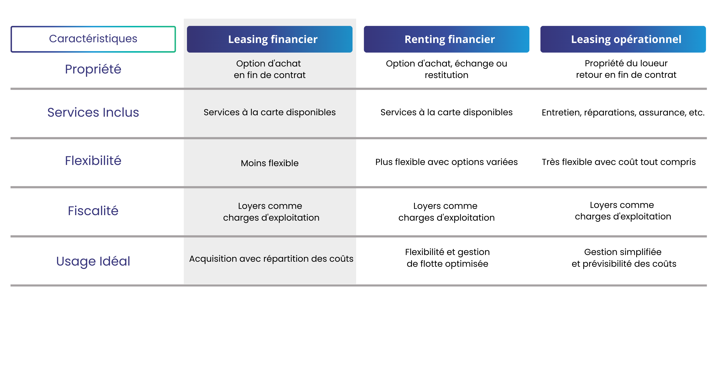 Que choisir entre leasing opérationnel, renting financier et le leasing financier ?