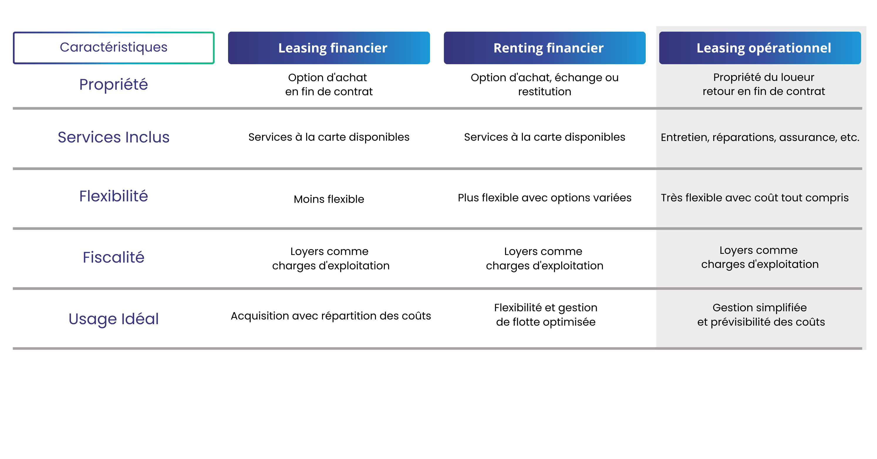Que choisir entre leasing opérationnel, renting financier et le leasing financier ?