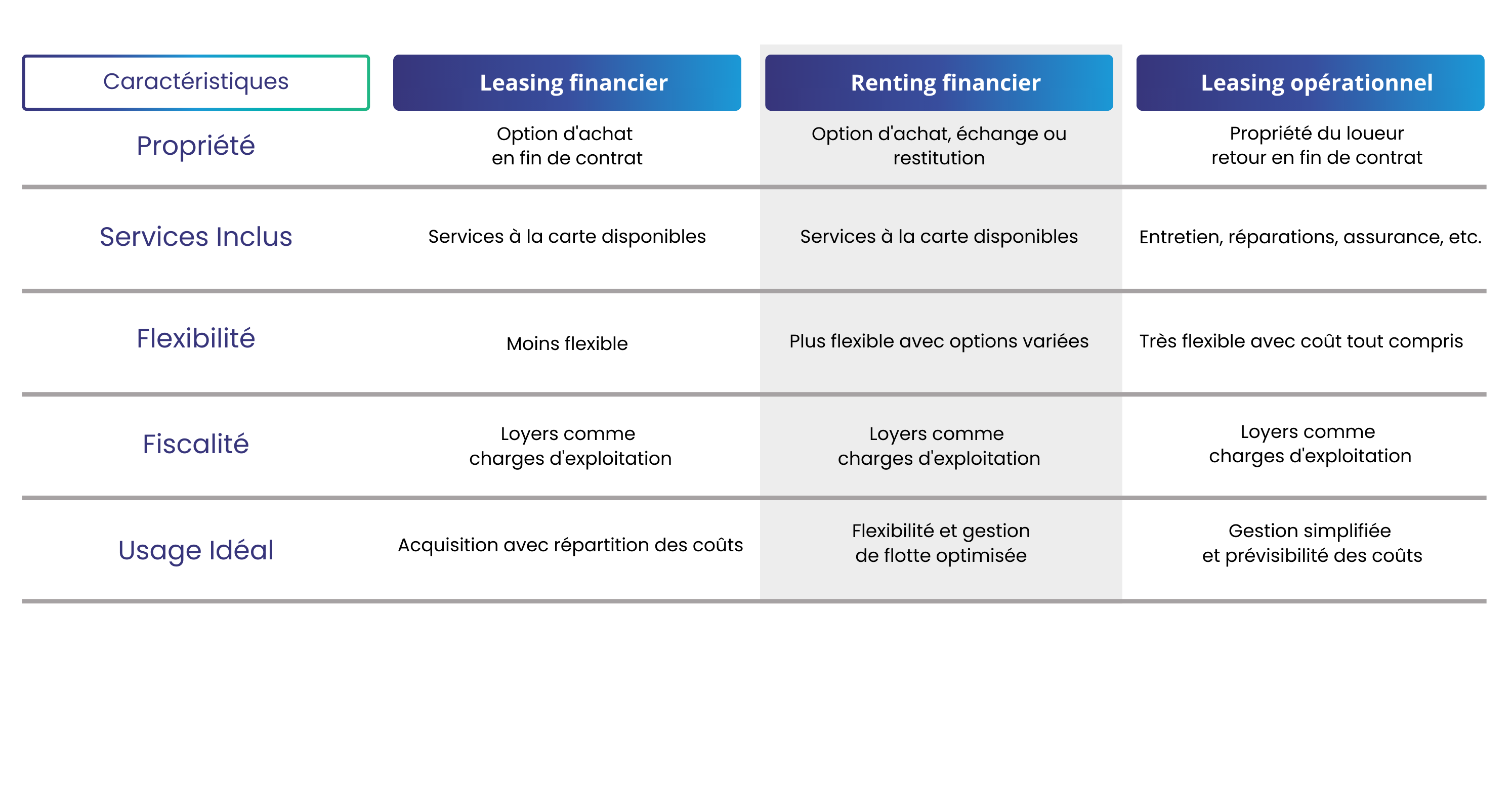 Que choisir entre leasing opérationnel, renting financier et le leasing financier ?