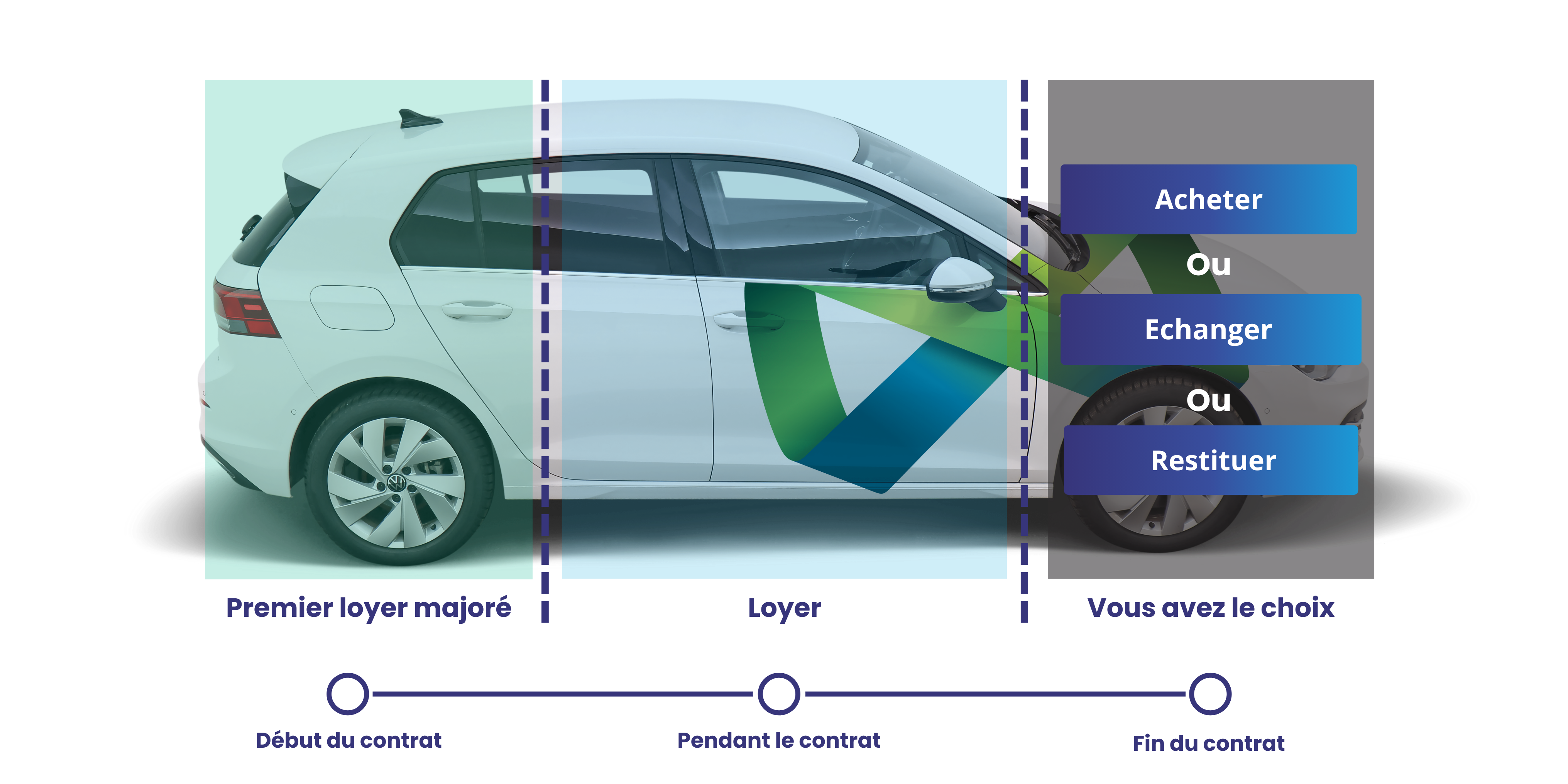 Le Renting Financier, communément appelé location avec option d’achat, est une formule de financement flexible conçue pour les professionnels. Vous louez une voiture à long terme pour une période déterminée avec la possibilité de choisir parmi trois options à la fin du contrat : acquérir la voiture pour sa valeur résiduelle, l’échanger contre un nouveau modèle ou la restituer sans obligation d’achat. Ce type de contrat vous permet de répartir les coûts comme des charges d'exploitation préservant ainsi la capacité d'investissement de votre entreprise.
