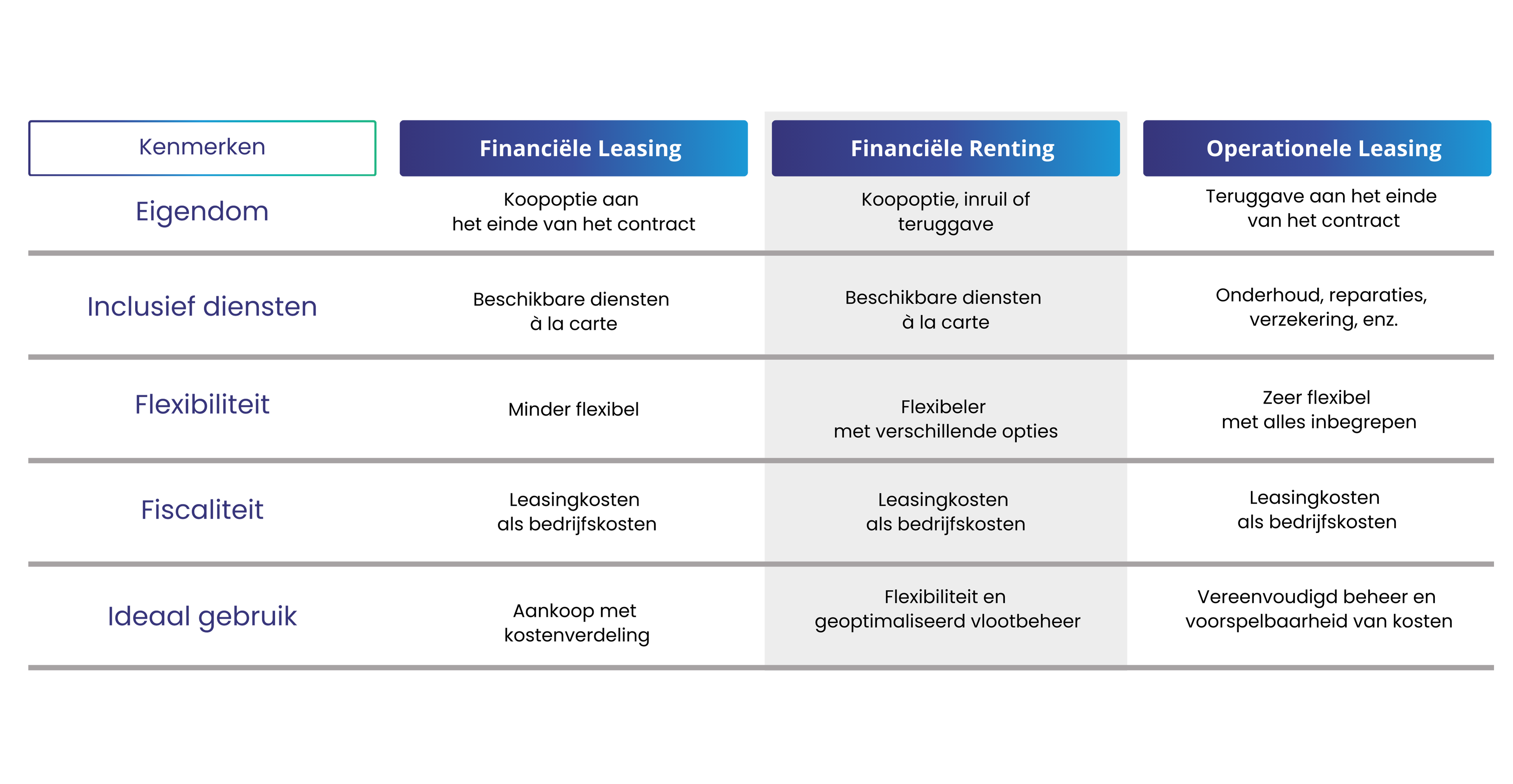 Kiezen tussen financiële leasing, financiële renting en operationele leasing?